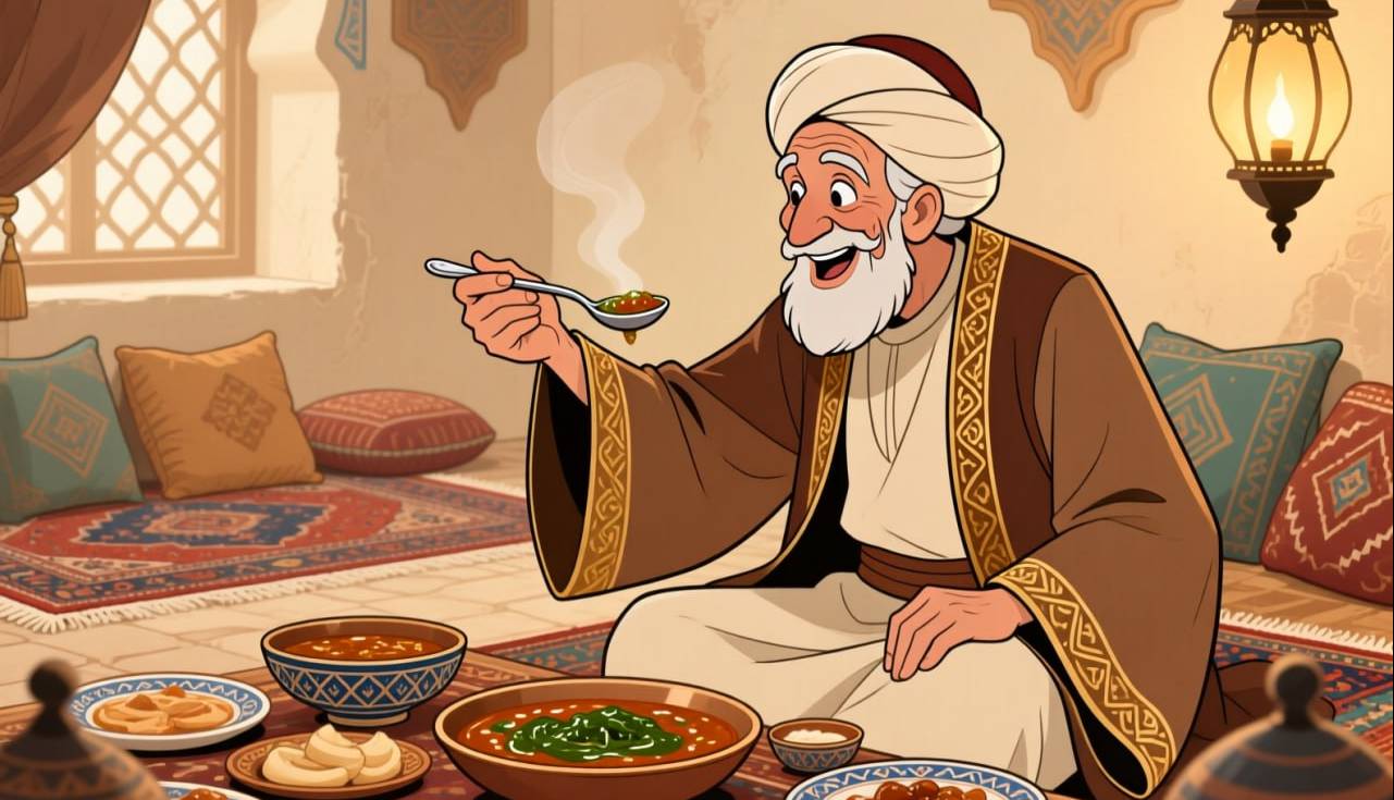 ماجرا از این قرار است که روزی ملانصرالدین با لباس کهنه به مهمانی رفت، اما صاحبخانه با بدخلقی او را بیرون کرد. ملا ناراحت اما زرنگ بود! به خانه رفت، از همسایه یک لباس فاخر قرض گرفت و دوباره وارد مهمانی شد. اینبار صاحبخانه او را با آغوش باز پذیرفت، در بهترین جای مجلس نشاند و سفرهی غذاهای خوشمزهای برایش پهن کرد. ملا که همه چیز را خوب فهمیده بود، خندید و موقع خوردن غذا گفت: «آستین نو بخور پلو، آستین نو بخور پلو!» صاحبخانه پرسید: «چه کار میکنی؟» ملا جواب داد: «همه احترام شما برای لباس من بود نه خودم، پس غذا هم برای لباسم است»!