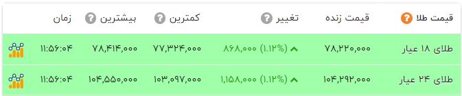 هر گرم طلای 18 عیار با رشد 86 هزار و 800 تومانی قیمت، 7 میلیون و 822 هزار تومان در طلافروشی ها معامله می شود.