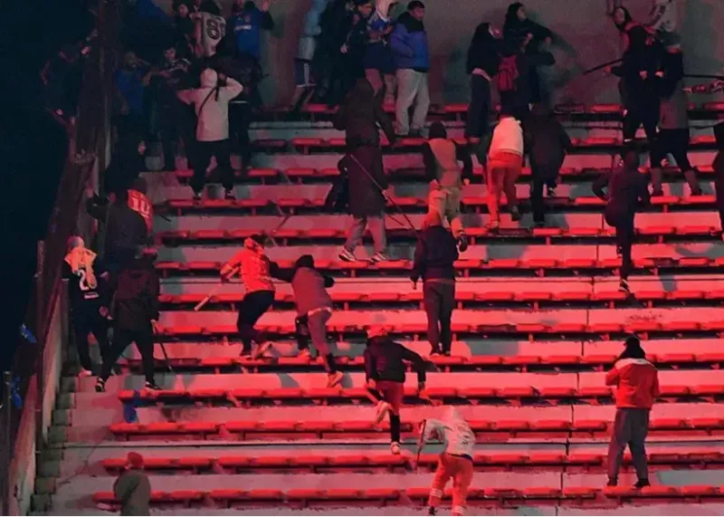 درگیری ظاهراً در بین دو نیمه آغاز شد، زمانی که هواداران میهمان اشیاء را در بخش خود به آتش کشیدند و صندلیها، سنگها، بمبها و سایر اشیاء را به سمت هواداران آرژانتینی پرتاب کردند. واکنش بسیار خشونتآمیز بود و ویدیوهای متعددی از حملات وحشیانه، از جمله به کودکان، در حال انتشار است.