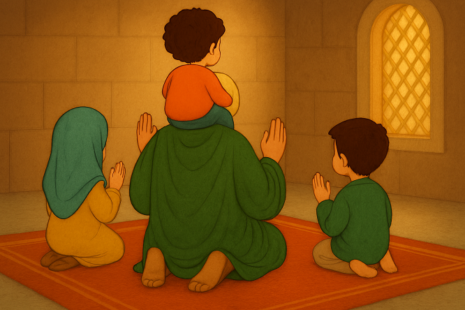 همه منتظر بودند ببینند پیامبر چه میکند. اما او نه ناراحت شد، نه چیزی گفت. فقط آرامتر نماز را ادامه داد تا حسن احساس امنیت کند. وقتی کودک خودش پایین آمد، پیامبر لبخند زد و نماز را تمام کرد.