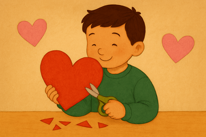 بچهها داخل قلب بنویسین یا نقاشی کنین که چطور میتونین مهربون باشین. مثلاً: