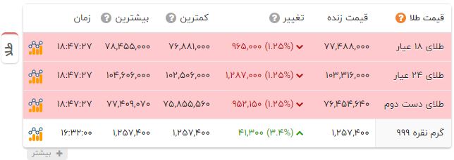 قیمت سایر انواع طلا را در جدول زیر ببینید.