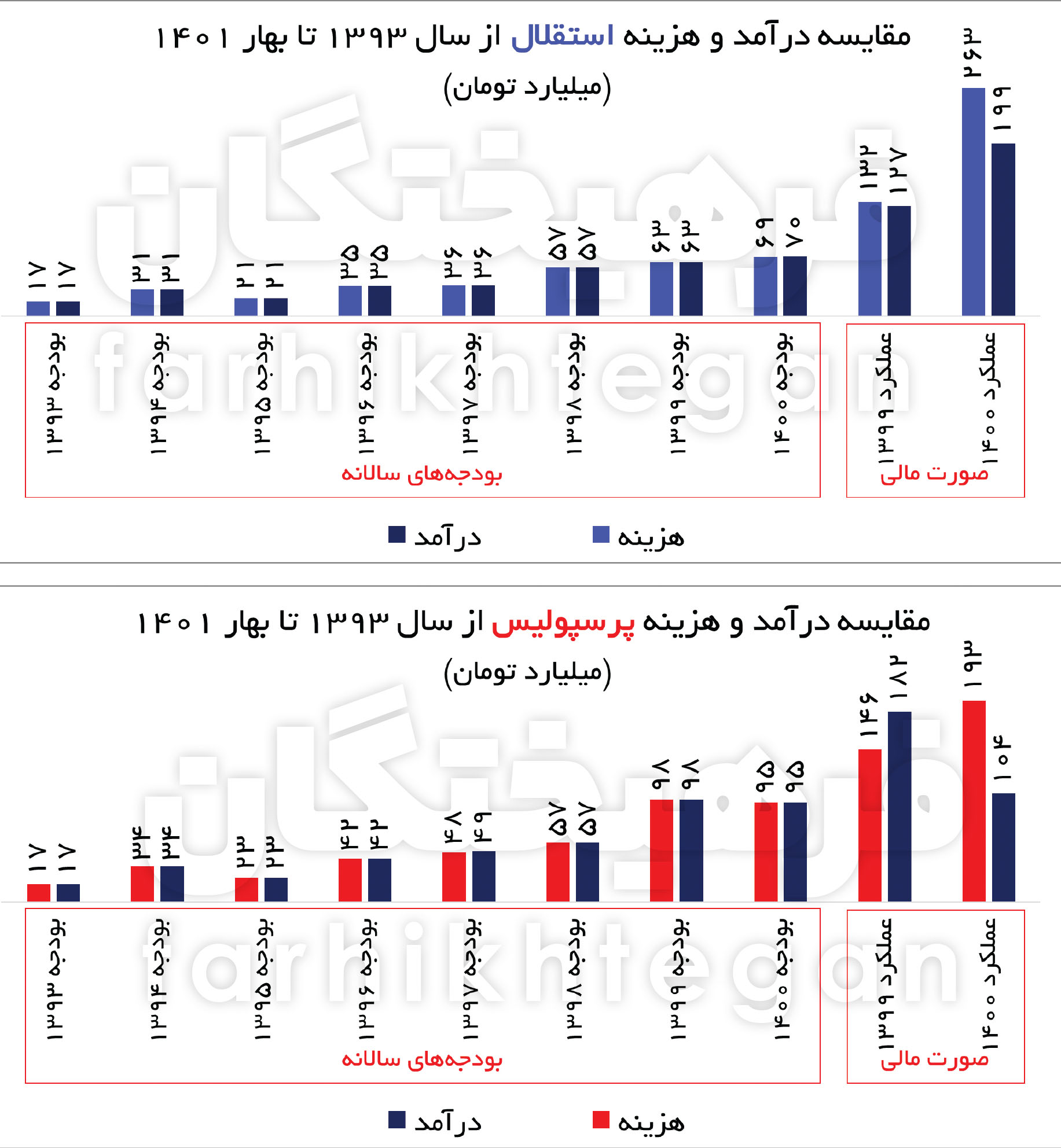 فارغ از هر اتفاقی (که بدترین آن ضرر و زیان سهامداران بوده)، اما این واگذاری ظاهرا یک آورده مثبت نیز به همراه داشته است. این آورده مثبت، ایجاد شفافیت حداقلی در هزینه-درآمد دو باشگاه دولتی است. بررسیها نشان میدهد پس از ورود دو باشگاه به بورس، هزینهها و درآمدهای این دو باشگاه به طرز عجیبوغریبی رشد کرده است. برای مثال درحالیکه مسئولان باشگاه پرسپولیس در بودجه 1400 شرکت های دولتی، هزینه و درآمد این باشگاه را هرکدام 95 میلیارد تومان اعلام کرده و باشگاه را سربهسر و نه زیانده نشان داده بودند، اما طبق اطلاعات صورت مالی این باشگاه، طی سال 1400 درآمد این باشگاه 104 و هزینه باشگاه 193 میلیارد تومان بوده است. به عبارتی، هزینه واقعی (عملکرد صورت مالی) این باشگاه 2 برابر بودجه اعلامی باشگاه بوده و درآمدهای باشگاه نیز تنها 9 میلیارد تومان بیشتر از رقم بودجه اعلامی است. وضعیتی که منجر به زیان خالص 89 میلیارد تومانی در آن سال شده است.