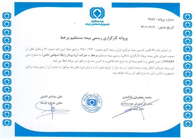 این بیمهنامه فقط داخل کشور ایران اعتبار دارد.