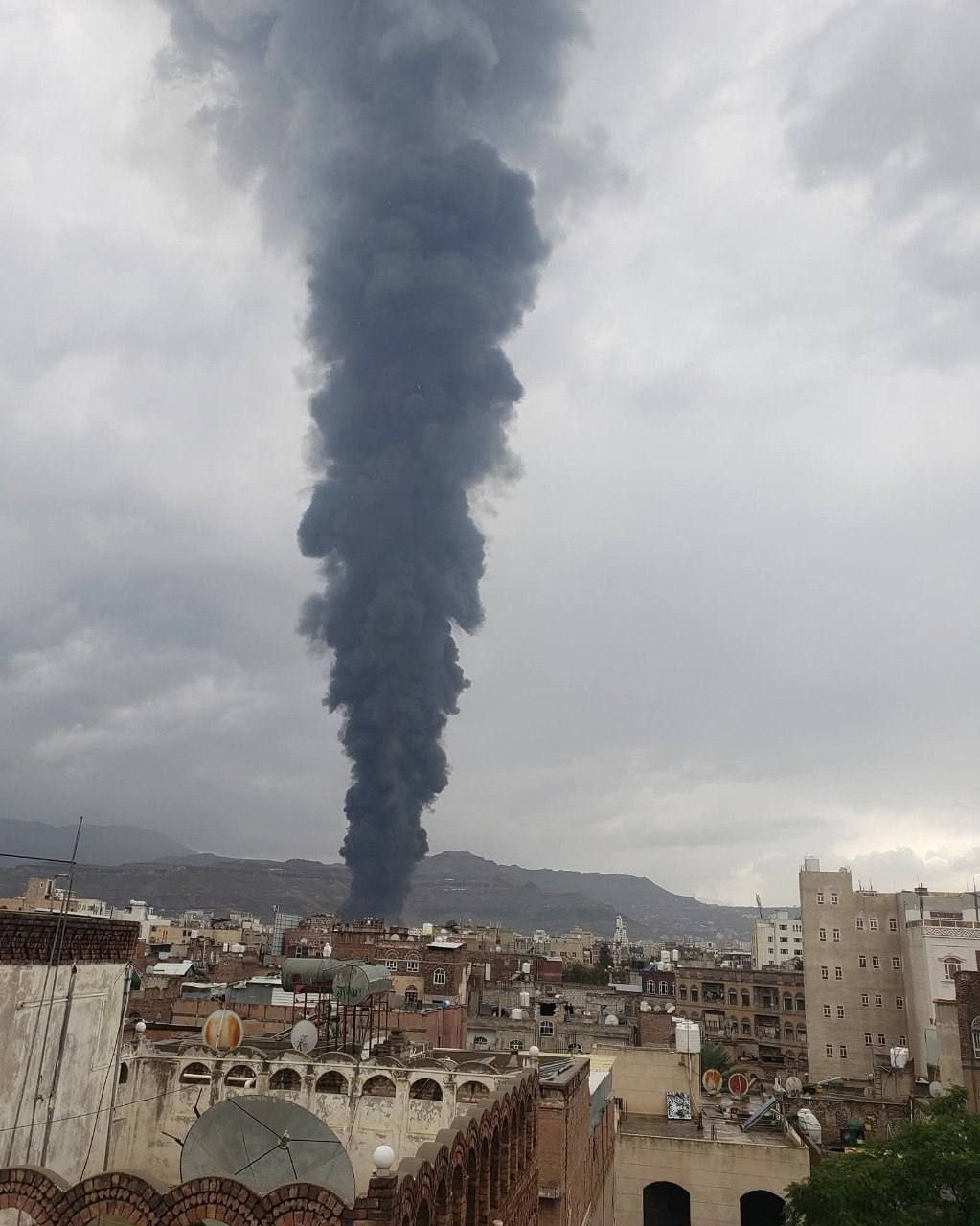 تصاویر اولیه از لحظه هدف قرار گرفتن یک سکوی انرژی در پایتخت یمن