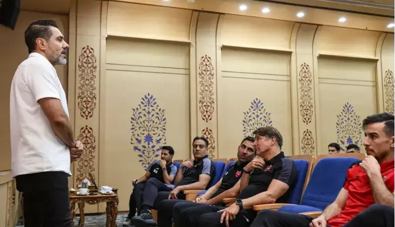 مربی آلمانی نیز که ثبح امروز هم در محل تمرین تیم در تهران با بازیکنان دیدار کرده بود، در این مراسم کنار وحید هاشمیان حضور داشت و پس از خوشوبش اولیه دقایقی با بازیکنان صحبت کرد.