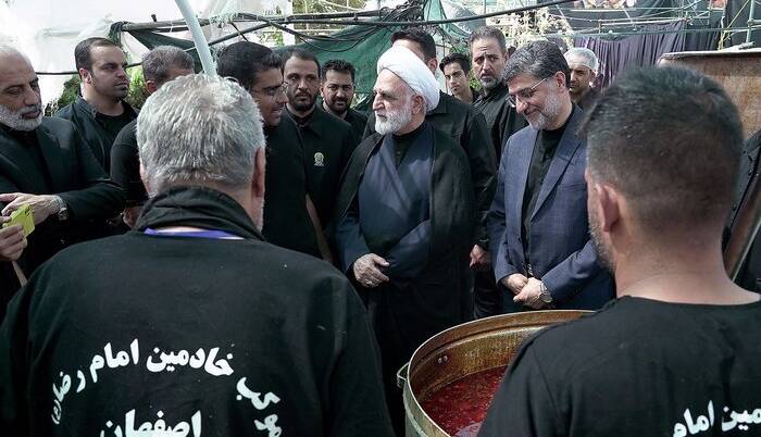 حضور رئیس قوه قضاییه در موکب اصفهانی ها در جوار حرم رضوی