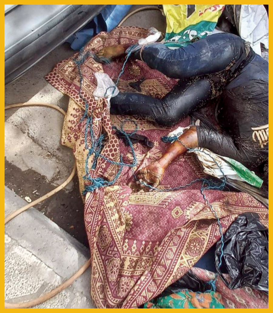 انتشار بوی تعفن شدید هنگامی اهالی را به کنجکاوی بیشتر واداشت که مشخص شد جسدی درون زیلو قرار دارد که با طناب اطراف آن بسته شده بود و کرمها از درون جسد بیرون میآمدند.