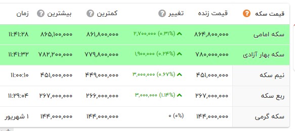 قیمت طلا و انواع سکه را در جدول زیر مشاهده می کنید.