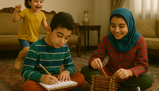 ظهر، وقت خلاقیت است: یک داستان کوتاه بنویس یا با وسایل سادهی خانه یک کاردستی بساز. حتی میتوانی یک نمایش کوچک اجرا کنی و خانوادهات را تماشاچی کنی!