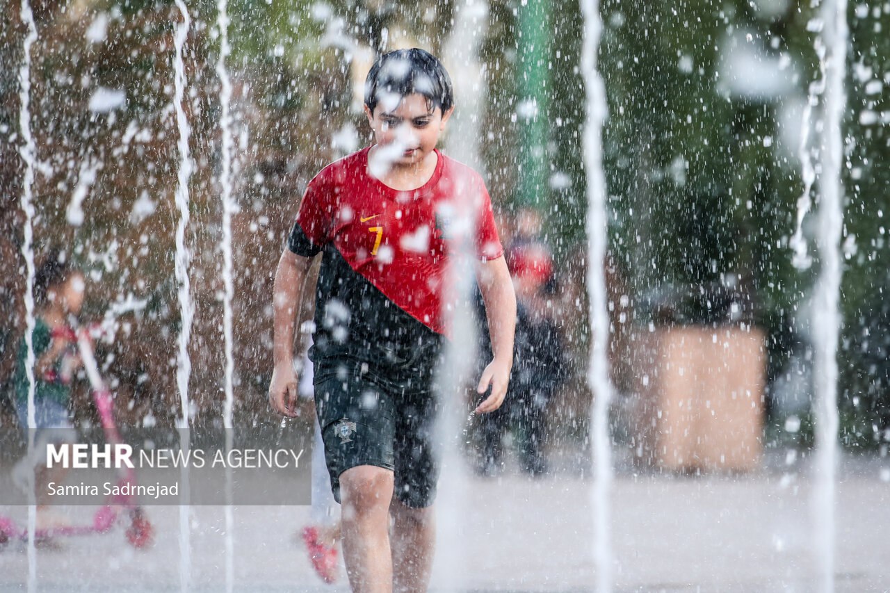 مهر/ با آغاز موج جدید گرما در شهریورماه، پارک آبوآتش تهران عصرها میزبان جمع زیادی از خانوادهها و کودکان است. فوارههای این پارک که در گرمای هوا بهصورت مداوم فعال هستند، فضایی شاد و خنک برای بازی و آبتنی بچهها را فراهم کرده است.