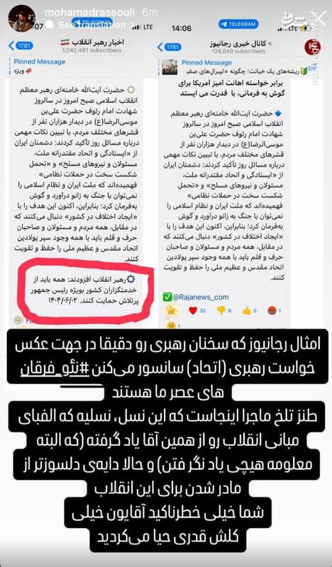 جالب آنکه برخی از جریانات همسو با صدای موساد برخی آگاهانه و بسیاری نیز ناآگاهانه در ساعاتی پس از انتشار بیانات آقا تلاش کردند با سانسور، تحریف و نیز تعلیق در کلام رهبر معظم انقلاب اختلال ایجاد کنند که تحلیل، امتداد و تقاطعگیری از آن قابل توجه خواهد بود.