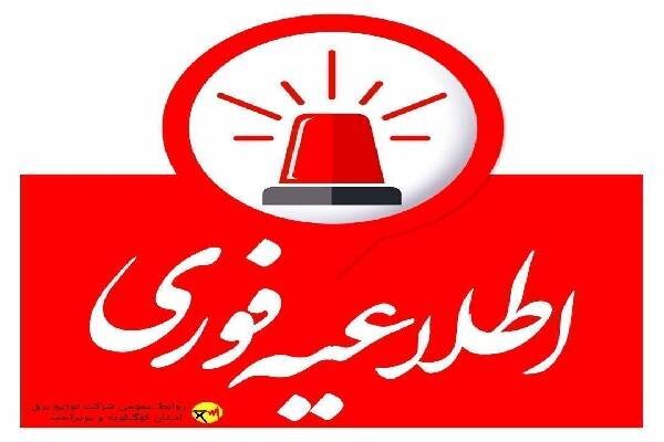 مهر/ شرکت برق کهگیلویه و بویراحمد در اطلاعیهای، از اجرای خاموشی در برخی مناطق استان به صورت دو نوبتی خبر داد.