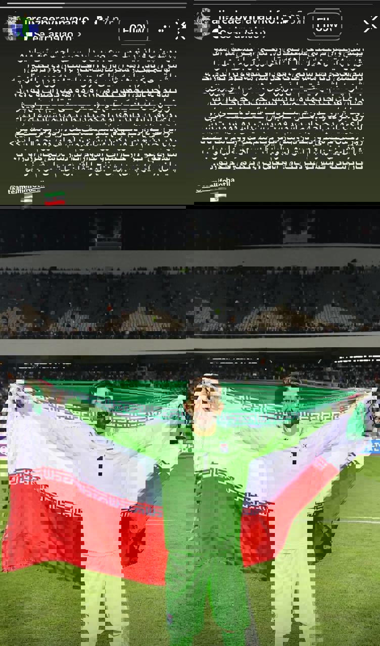 «پوشیدن پیراهن تیم ملى حس عجیبی دارد. حسی از جنس عشق، امید و شور بینهایت. در همه این سالها که افتخار سربازی برای تیم ملی را داشتم، سعی کردم با همه شرایطی که وجود داشت همه وجودم را بگذارم. چه باشم و چه نباشم موفقیت تیم ملی آرزوی من و همه مردم است و پیروزی در هر بازی باعث لبخند یک ملت میشود. مسیر سختی تا جام جهانی پیش روی ما قرار دارد و باید هر قدم را محکم برداریم تا نماینده شایستهای برای ایران عزیزمان در جام جهانی باشیم. قسمت نیست در اردو و تورنمنت پیش رو در خدمت تیم ملی و در کنار دوستان عزیزم باشم، قلب و روحم اما با تک تک شما رفقای عزیزتر از جانم است و امیدوارم ابتدا در سلامتی کامل اردو را به پایان برسانید و سپس بهترین نتایج و اتفاقات برای تیم ملی رقم بخورد.»