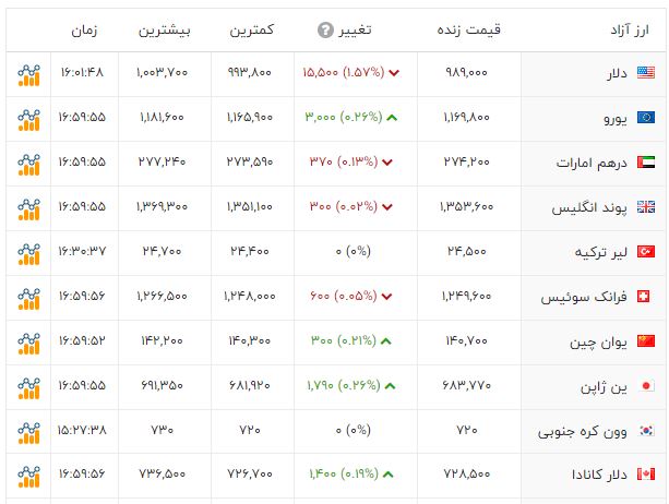 دلار در بازار با کاهش 1550 تومانی به قمیت 98 هزار و 900 تومان رسیده است.