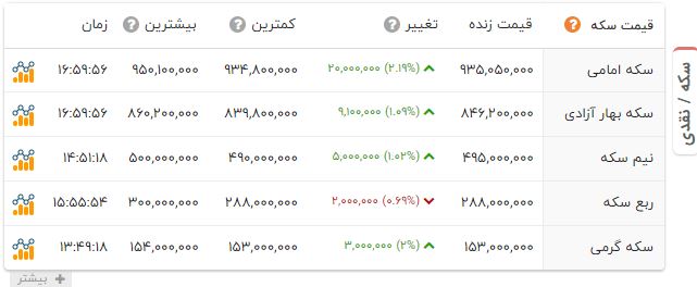 به گزارش آخرین خبر و به نقل از سایت شبکه اطلاعرسانی طلا، سکه و دلار، سکه امامی با افزایش 2 میلیون تومانی، 93 میلیون و 505 هزار تومان شد.